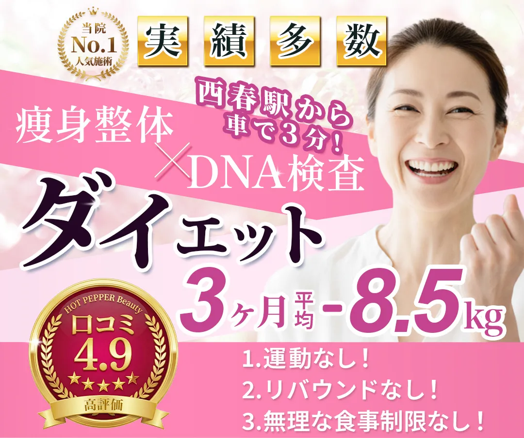当院では、肥満遺伝子検査を行い、食生活において脂肪? 糖?タンパク質?の何が原因で太ってしまったのか?等を明確にし、遺伝子レベルであなたに合うオーダーメイドのダイエット方法を提案し、的確なアドバイスでダイエット成功のサポートに役立てます!